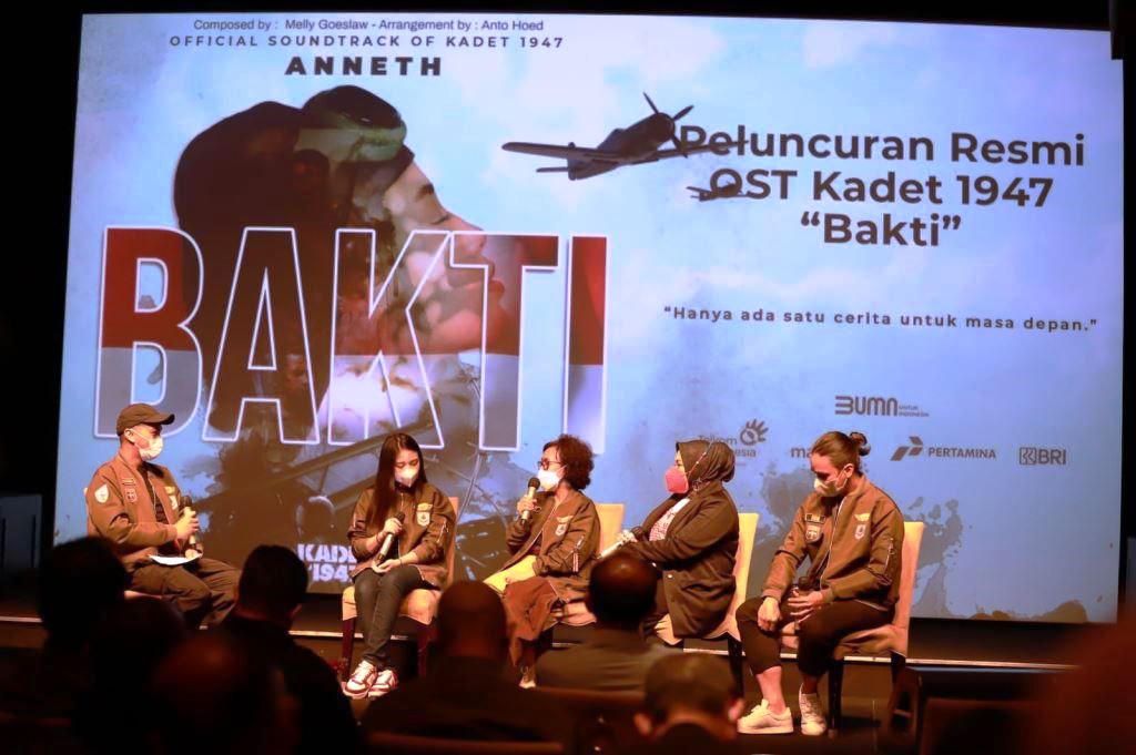 Jakarta, Trenz News | TNI Angkatan Udara bekerjasama dengan Temata Studios meluncurkan Original Soundtrack (Ost) Film Kadet 1947 yang dibawakan Anneth Delliecia Nasution ciptaan Melly Goeslaw dan aransemen musik Anto Hoed dengan judul “Bakti” di plaza Senayan Jakarta Pusat, Rabu (22/9/2021).