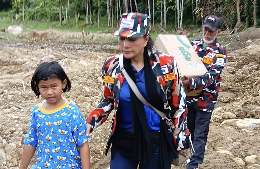 Kabupaten Agam, Trenzindonesia.com | Bukan sekadar turun dari panggung, tetapi turun langsung ke lumpur bencana. Artis dan penyanyi Rani VE menunjukkan sisi lain kepeduliannya dengan menempuh perjalanan darat melelahkan selama 4 jam dari Padang untuk menyapa dan menyalurkan bantuan langsung kepada korban banjir bandang di Palembayan, Kabupaten Agam, Sumatera Barat. Aksi nyata ini ia lakukan dalam kapasitasnya sebagai Wakil Ketua Umum Bidang Sosial Kesejahteraan Markas Besar Laskar Merah Putih (Mabes LMP).