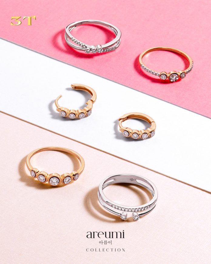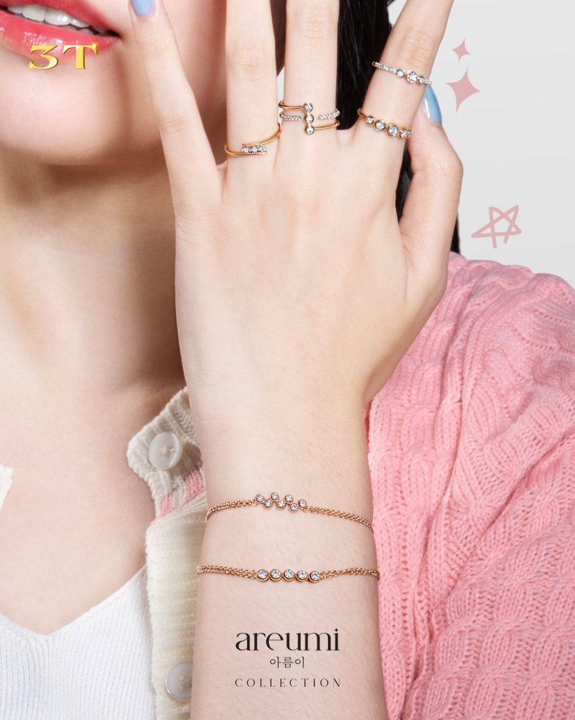 Terinspirasi dari Korean Style, Areumi Collections ini merupakan koleksi perhiasan berlian dengan emas 18K yang hadir dengan desain yang ramping, minimalis, dan modern dengan sentuhan berlian H VS sehingga harganya tetap affordable.