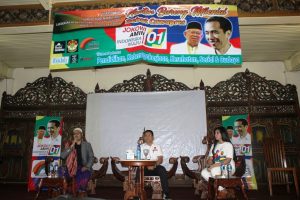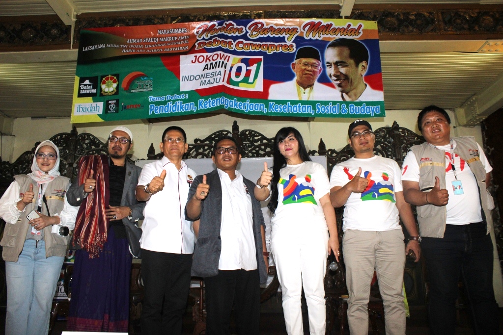 Dengan keberadaan Yusi Syarief atau lengkapnya Yusinta Ningsih Syarief SH. MSI serta Ajib Sibli selaku Ketua Panitia, acara “Nonton Bareng Milenial Debat Cawapres’ yang diawali dengan diskusi bertema ‘Seorang Kyai Ma’ruf Yang Tak Pernah meninggalkan Sarung” diselenggarakan oleh Balai sarwono; CAKRA19, Indonesia JOSS (indonesia sahabat santri), majalah Ibadah, JasMEV, serta Master D19 Portal KMA. (Fjr / Trenz Indonesia) | Foto: Fajar