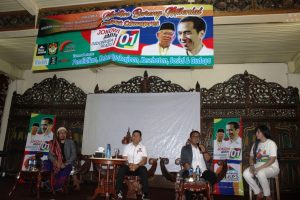 Jelang acara “Nonton Bareng Milenial Debat Cawapres’ juga digelar acara diskusi ringan bertema ‘Seorang Kyai Ma’ruf Yang Tak Pernah meninggalkan Sarung” yang dipandu oleh Yusi Syarief selaku SekJen JOSS Indonesia (Jokowi Sahabat Santri), dengan menghadirkan nara sumber Ahmad Syauqi Ma’ruf Amin, Laksamana Muda TNI (Purn) Iskandar Sitompul serta Habib Abu Jibril Basyaiban.