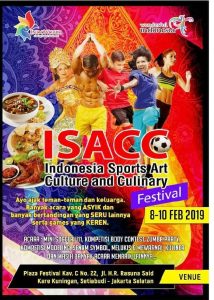 Jadi bagi anda penggemar olah raga, seni budaya dan kuliner ISACC merupakan festival yang bisa anda nikmati sekeluarga hingga tanggal 10/2/2019.