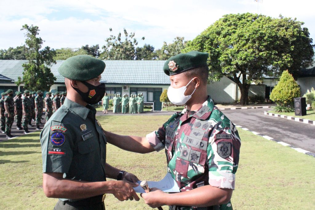 MALANG, Trenz News | Bertempat di lapangan apel Yonarhanud 2 Kostrad, Komandan Batalyon Arhanud 2 Kostrad, Letkol Arh Agus Nur Fujianto, S.I.P., M.Han. memimpin acara pelepasan 18 orang prajurit terbaik menuju satuan baru yaitu Yonarhanud 9 Kostrad dan Yonarhanud 16 Kostrad. Malang, Senin (10/1/2021).