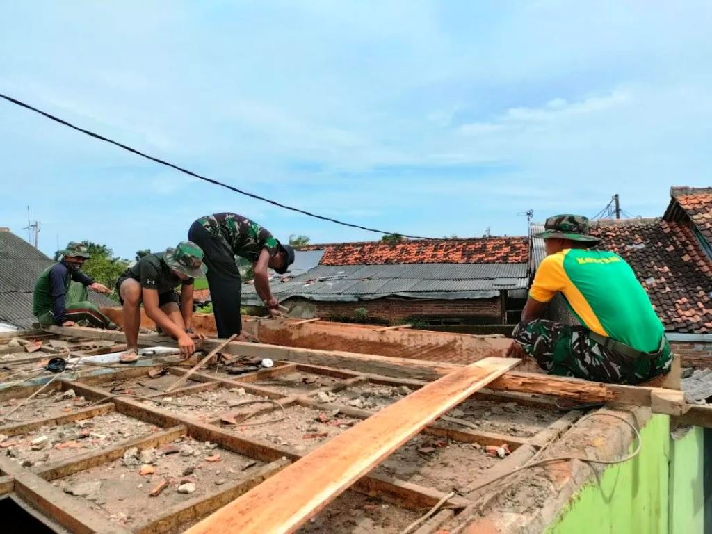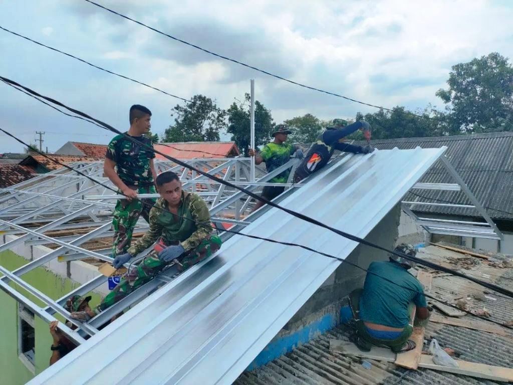KARAWANG, Trenz News | Batalyon Infanteri (Yonif) Para Raider 305/Tengkorak Kostrad dalam rangka HUT ke-61 Kostrad bersama masyarakat bahu-membahu memperbaiki Rumah Tidak Layak Huni (RTLH) Warakawuri di Desa Sukaluyu, Teluk Jambe Timur, Karawang, Jawa Barat. Minggu (6/3/2022).