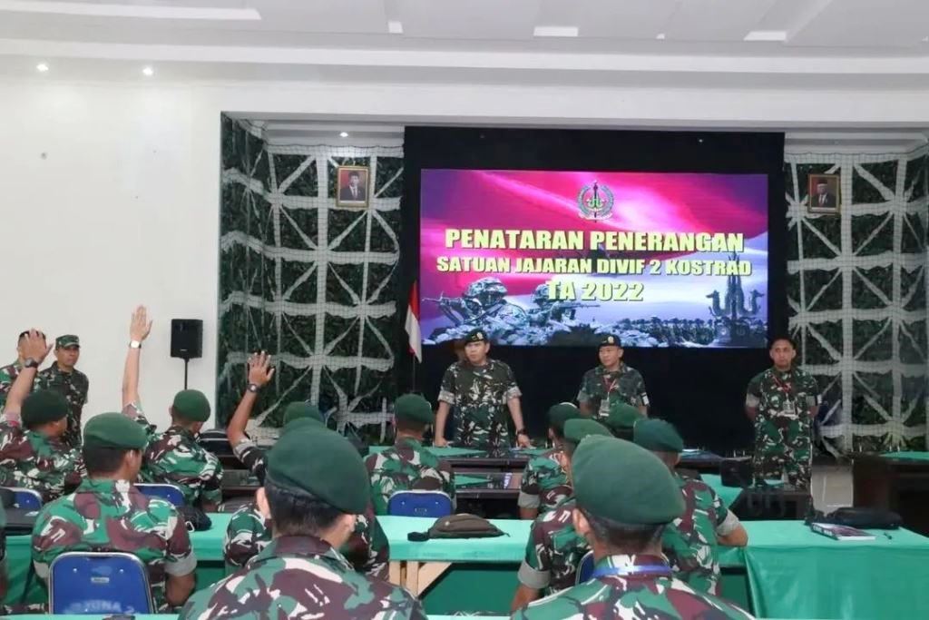 MALANG, Trenz News | Divisi Infanteri 2 Kostrad menggelar kegiatan penataran penerangan TA 2022, yang dibuka Asintel Kasdivif 2 Kostrad Letkol Inf Erwin A.T. Wiyono A., S.T., M.Tr.(Han)., dan diikuti oleh personel satuan jajaran Divisi Infanteri 2 Kostrad sejumlah 27 satuan, bertempat di Gedung Sandoyo Madivif 2 Kostrad, Singosari, Malang. Senin (05/09/2022).
