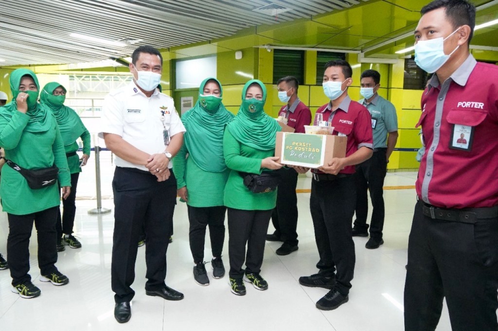 JAKARTA, Trenz News | Sebagai salah satu wujud perhatian dimasa Pandemi Covid-19 ini, Wakil Ketua Persit Kartika Chandra Kirana Gabungan Kostrad, Ibu Ely Nur Rahmad bersama pengurus melakukan aksi sosial “Jumat Berkah” dengan memberikan paket bantuan Sembako kepada Petugas Porter Stasiun Gambir, Jakarta Pusat, Jumat (11/2/2022).