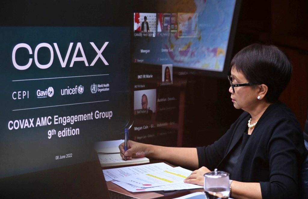 Secara global, hampir 12 miliar dosis vaksin COVID-19 telah disuntikkan, dan pasokan vaksin yang tersedia saat ini cukup untuk memenuhi kebutuhan vaksinasi global. Retno pun menekankan kembali pernyataan Presiden RI Joko Widodo (Jokowi) pada COVAX AMC Summit bulan April 2022 lalu mengenai pentingnya untuk segera mendorong vaksin menjadi vaksinasi.