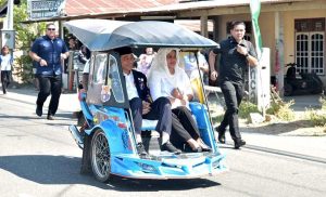 Tiba dengan menggunakan becak motor (bentor), yang merupakan becak khas Gorontalo, kedatangan Presiden Jokowi dan Ibu Iriana disambut oleh ratusan mahasiswa.