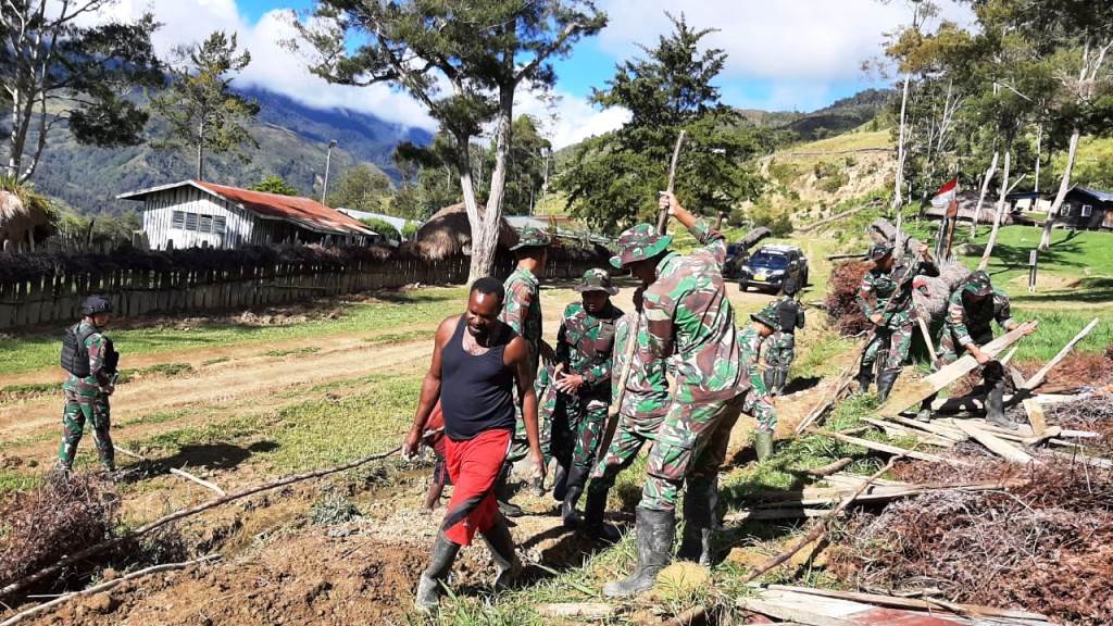 LANNY JAYA-PAPUA, Trenz News | Kemanunggalan TNI rakyat diwujudkan oleh Prajurit Satgas Yonif MR 412 Kostrad melalui kegiatan sosial kemasyarakatan yang terus dilakukan di daerah penugasan pegunungan tengah Papua, guna mendukung tugas pokok dalam menjaga kedaulatan negara.