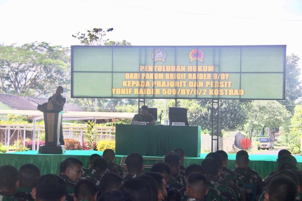 Danyonif Raider 509 Kostrad, Mayor Inf Hulisda Melala menyampaikan agar prajurit dan persit betul – betul harus memahami dan menyimak seluruh materi yang disampaikan sehingga dapat menambah pemahaman tentang materi hukum serta dapat menerapkannya dalam kehidupan sehari hari agar tidak melakukan pelanggaran. (Penkostrad).